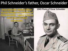 Básicamente, la tecnología militar está 45 años por delante cada año, en comparación con lo que se muestra públicamente . Por eso, en 1943, con la tecnología de tubos de vacío, lograron hacer que un barco militar fuera invisible (este es el Proyecto Filadelfia, nt) desde un lugar y apareciera en otro. Mi padre, Otto Oscar Schneider, luchó en ambas guerras. En este último fue capitán de U-Boat (un cierto tipo de submarino, nt). Fue capturado y luego repatriado a Estados Unidos. Estuvo involucrado en varios proyectos, la bomba atómica, la bomba H y el Experimento Filadelfia. Inventó una cámara de alta velocidad que se utilizó en las primeras pruebas atómicas en la isla Bikini el 12 de julio de 1946 (la primera bomba de hidrógeno). Tengo fotos originales de esta prueba. Estas muestran ovnis moviéndose a través del cuadro a velocidades enormes. La isla Bikini ha sido "invadida" por ovnis, especialmente bajo el agua, durante mucho tiempo. En ese momento, el general MacArthur dijo que la próxima guerra sería contra extraterrestres de otros mundos .